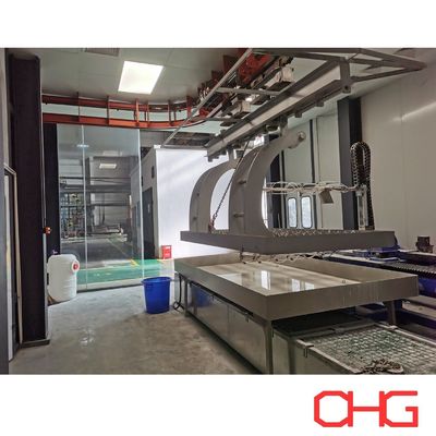 この生産ラインは、チタン合金、高温合金、高強度鋼などの材料を使用した、さまざまな形状の鍛造品へのガラス潤滑剤の塗布を専門としています。スプレープロセスは、自動スプレーと補足的な手動コーティングの両方を統合し、包括的なカバレッジを保証します。使用されているコンベアシステムは、最大2トンのワークピースを処理できるように設計された、高耐久性のアキュムレーションタイプです。