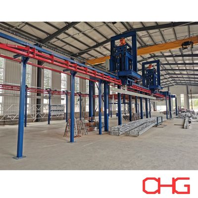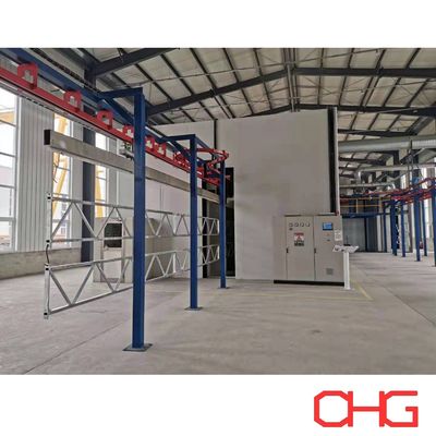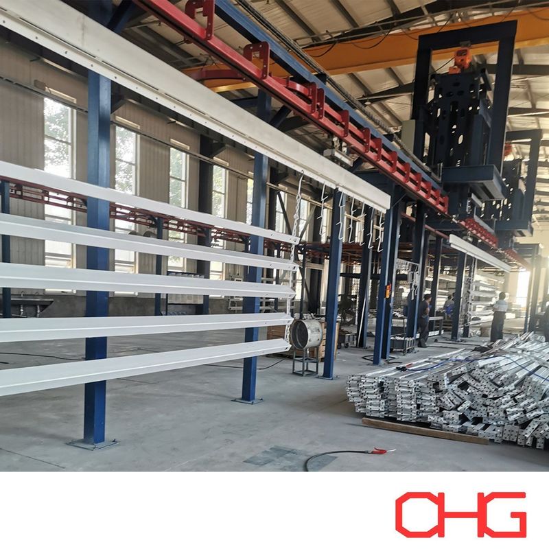 この粉体塗装生産ラインは、様々なサイズと形状のアルミプロファイルに最適です。オーバーヘッドコンベアシステムを採用し、手動での部品の積み込みと取り降ろしを容易にし、柔軟性と操作性を確保しています。